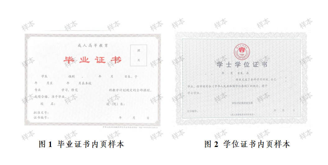 凡取得我校成人高等学历教育本科毕业证书,符合授位条件且毕业设计(论文)质量符合抽检评议要求者,在规定时间内,经本人申请,由学校学位评定委员会评定通过,颁发相应学士学位证书(图2)。
