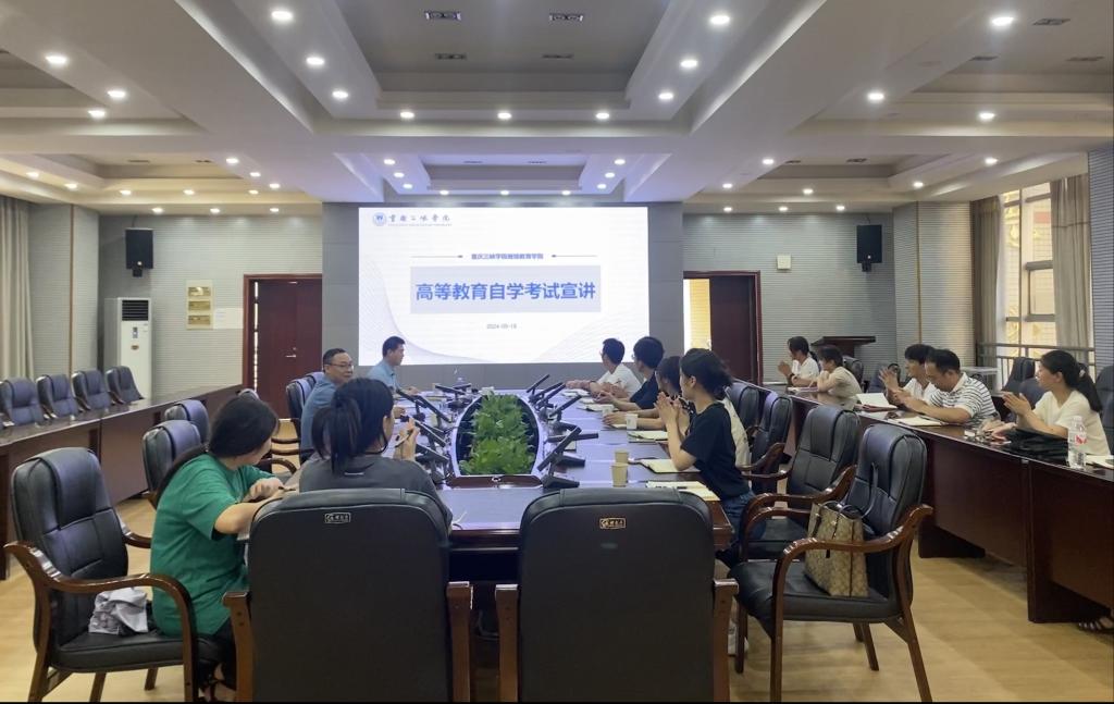 为进一步做好高等教育自学考试招生宣传工作,9月18日下午,继续教育学院院长郭远臣带队赴重庆安全技术职业学院开展了高等教育自学考试招生宣讲人员的培训会。重庆安全技术职业学院各院系辅导员及部分专业教师代表参加了此次培训会,会议由重庆安全技术职业学院科研处处长李冲主持。