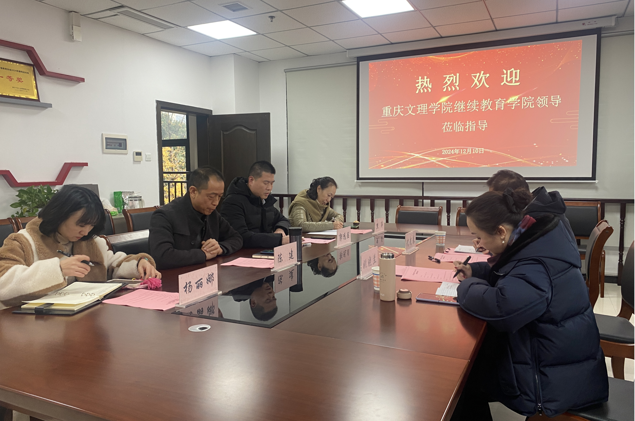 12月10日下午,重庆文理学院继续教育学院(培训学院)院长代武春、副院长姚晓兰等一行,莅临我院开展继续教育工作交流座谈。我院党总支书记陈建、院长郭远臣、培训部主任杨丽娜、继教科熊萍及党政办公室工作人员参加了本次座谈会。